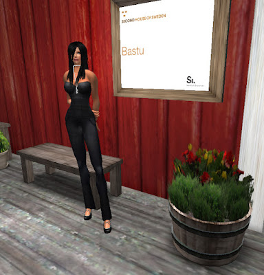 Esta es la entrada de la sauna (bastu en sueco). Como verán es una típica casa sueca de madera pintada de rojo...con un macetero igualito al que tengo en mi jardín en RL. En su interior van a encontrar algunos freebies, trajes de baño y toallas. (para hombre y mujer).