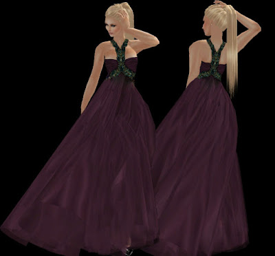 Hoy recibí otras dos creaciones de las talentosísimas Barbra y AvaGardner Kunglers. La primera, Angeline, es un maravilloso vestido de fiesta en color ciruela con detalles en color contrastante. La larga falda viene con un script, que permite acomodar la misma al sentarse o al caminar...